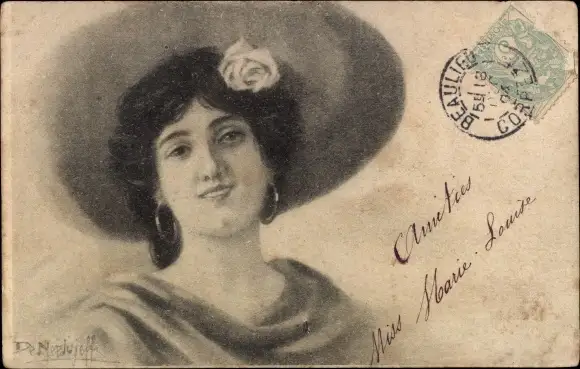 Künstler Ak Portrait einer Frau mit Ohrringen