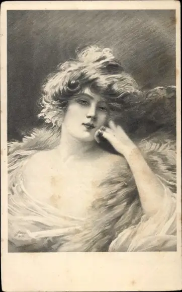 Künstler Ak Portrait einer Frau mit wehenden Haaren