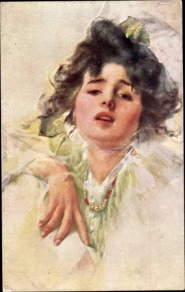 Künstler Ak Portrait einer dunkelhaarigen Frau