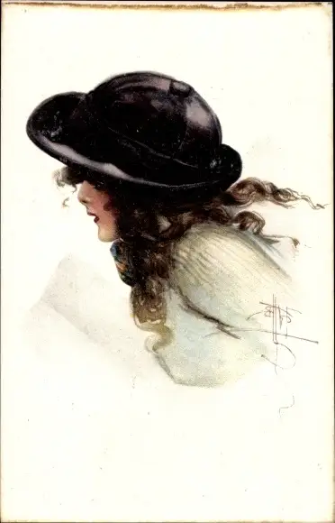 Künstler Ak Portrait einer jungen Frau mit Hut