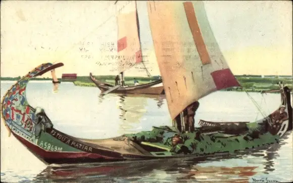 Künstler Ak Portugal, Segelboote, Wasserpartie