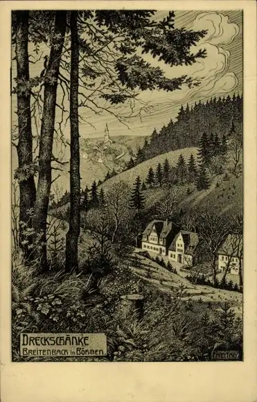 Künstler Ak Potůčky Breitenbach Region Karlsbad, Dreckschänke