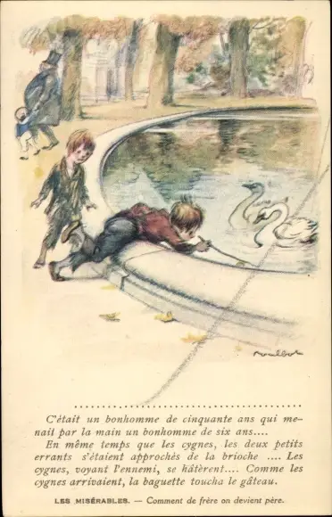 Künstler Ak Poulbot, Francisque, Les Miserables, Jungen, Schwäne