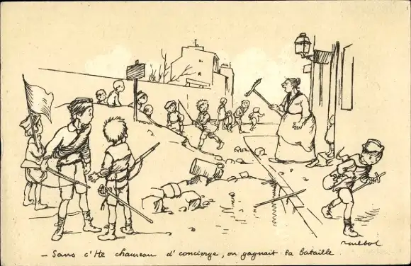 Künstler Ak Poulbot, Francisque, Spielende Kinder, wütende Frau