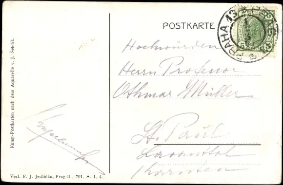 gelaufen 1907, Ecken bestoßen, sonst guter Zustand