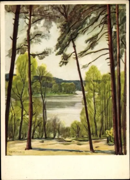 Künstler Ak Preiss, F., See, Ufer, Bäume