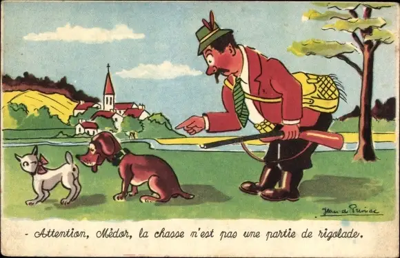 Künstler Ak Preissac, Jäger, Jagdwaffe, Beschäftigter Jagdhund