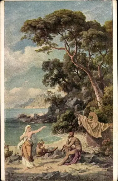 Künstler Ak Preller, Odyssee Landschaften IV c, Odysseus, Nymphe Kalypso