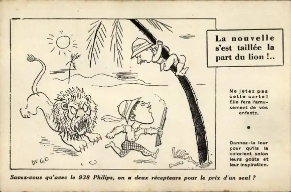 Künstler Ak Radio 938 Philips, Reklame, Löwe, Jäger