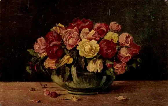 Künstler Ak Rammelt-Bürger, Rosen, Blumenvase
