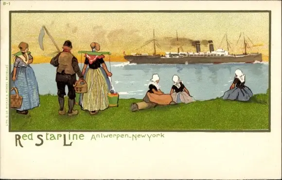 Künstler Ak Red Star Line, Antwerpen New York, Passagierdampfer, belgische Trachten