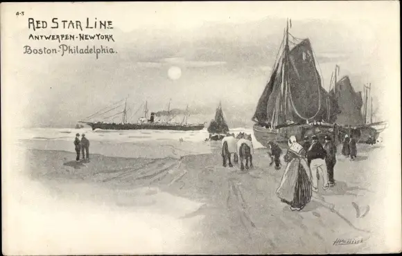 Künstler Ak Red Star Line, Passagierdampfer Antwerpen New York, Boston, Philadelphia