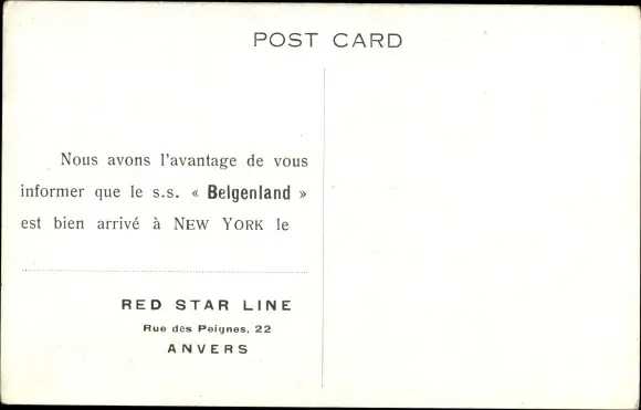 Künstler Ak Red Star Line, RSL, Triple Screw Belgenland, Dampfer, Steamer