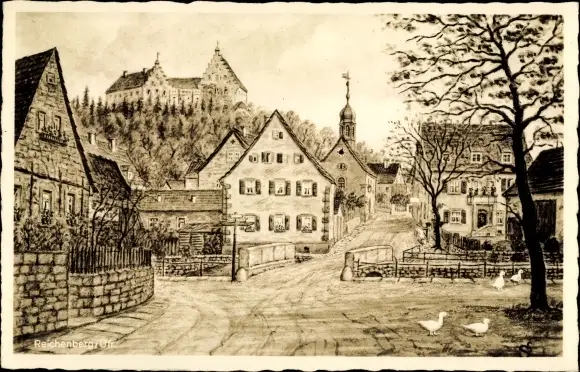 Künstler Ak Reichenberg in Unterfranken, Straßenpartie