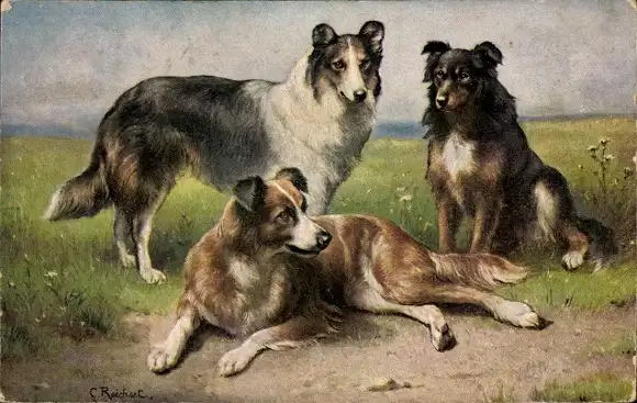 Künstler Ak Reichert, C., Colleys, Schottische Schäferhunde, Collies