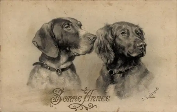 Künstler Ak Reichert, Glückwunsch Neujahr, Zwei Hunde