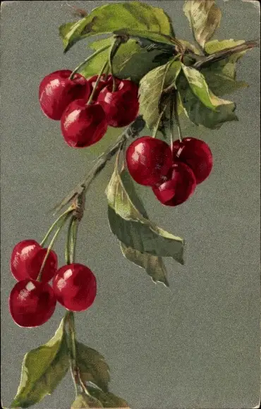 Künstler Ak Reife Kirschen am Ast, Stillleben