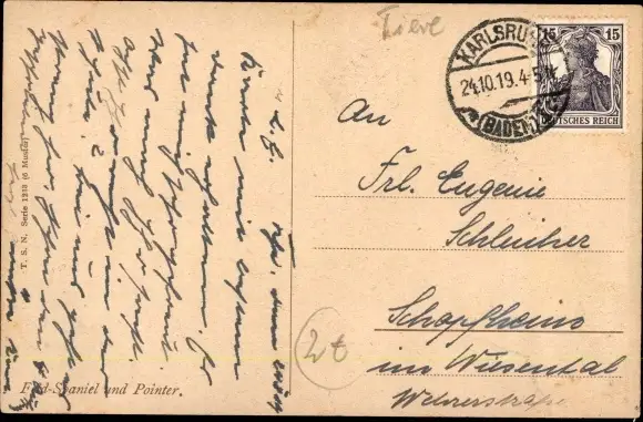Zustand, siehe Scan, gelaufen, 1919- TSN 1213 - ca 14 cm X 9 cm