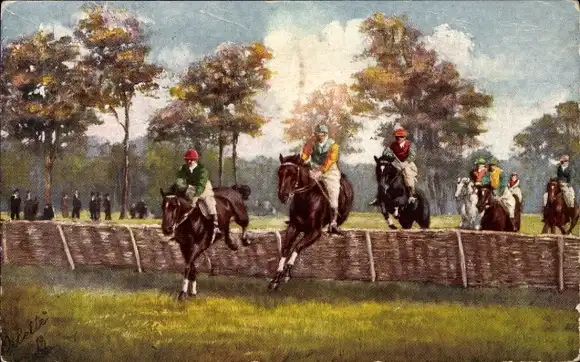 Künstler Ak Reiter springen über eine Hürde, Sport, Tuck and Sons 9118