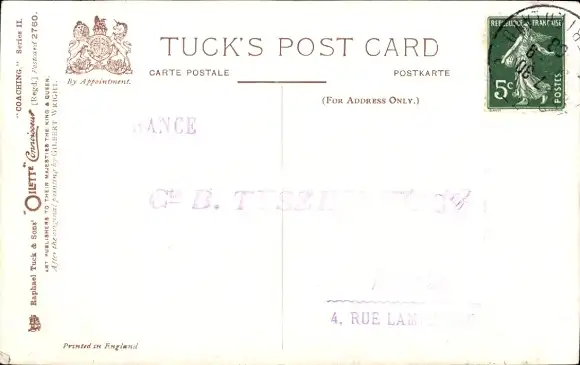 Zustand, siehe Scan, gelaufen, 1908- Tuck Coaching II 2760 - ca 14 cm X 9 cm