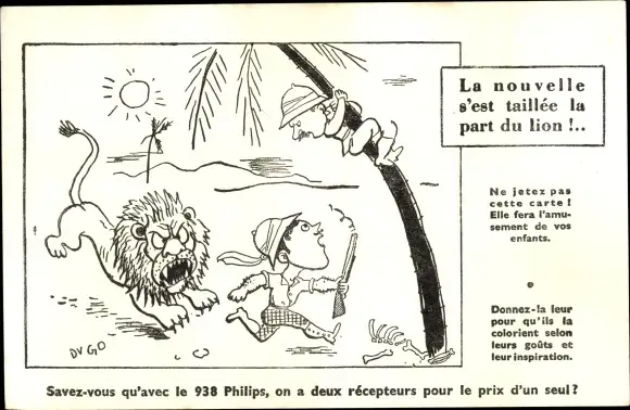 Künstler Ak Reklame, Radio 938, Philips, Löwe, Jäger