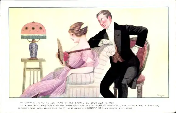 Künstler Ak Reklame Urodonal, Wie du in deinem Alter noch den Hof machst...