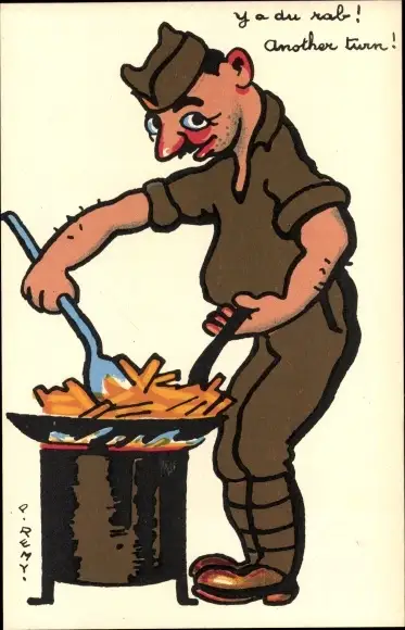 Künstler Ak Remy, Französischer Soldat beim Kochen