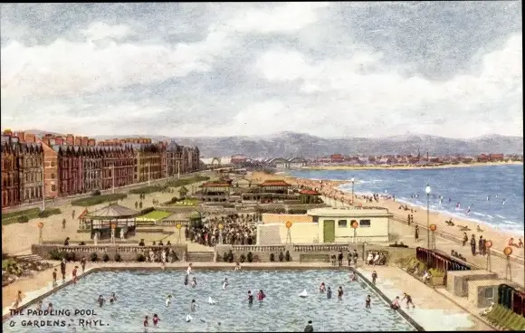 Künstler Ak Rhyl Wales, Planschbecken, Gärten