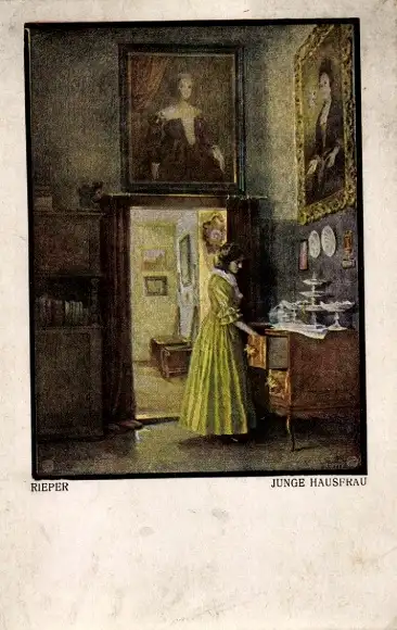 Künstler Ak Rieper, Junge Hausfrau