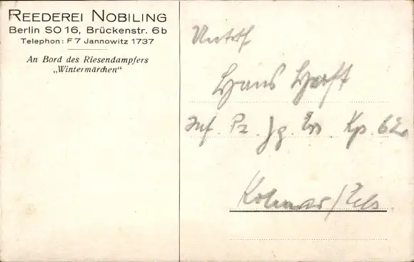 Künstler Ak Riesendampfer Wintermärchen, Reederei Nobiling