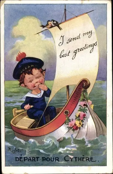 Künstler Ak Right, Depart pour Cythere, Seemann in Segelboot