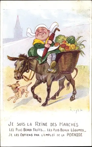 Künstler Ak Right, Frau mit Gemüse auf einem Esel, Kalidüngung