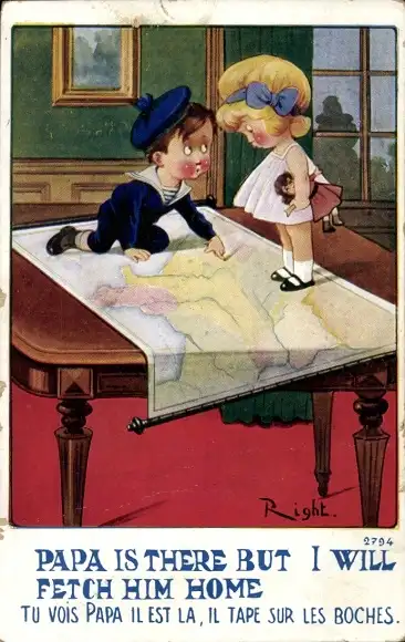 Künstler Ak Right, Kinder auf der Weltkarte, Papa is there, but I will fetch him Home