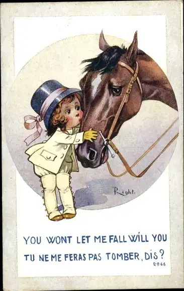 Künstler Ak Right, Mädchen in Reitkleidung mit einem Pferd