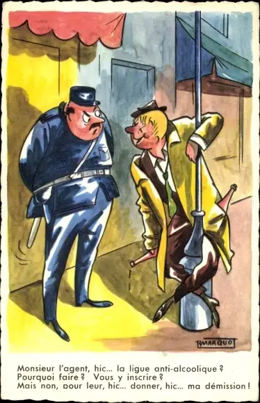 Künstler Ak Rmarquo, Betrunkener, Flaschen, Polizist, Monsieur l'agent, hic...