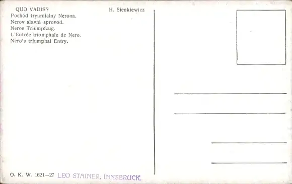 Künstler Ak Roman von Henryk Sienkiewicz Quo vadis?, Neros Triumpfzug