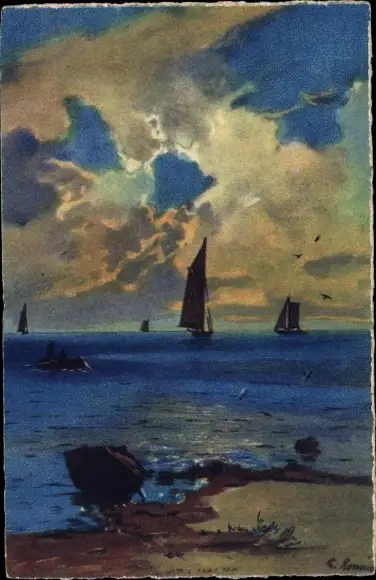 Künstler Ak Romin, G., Fischerboote, Segelboote