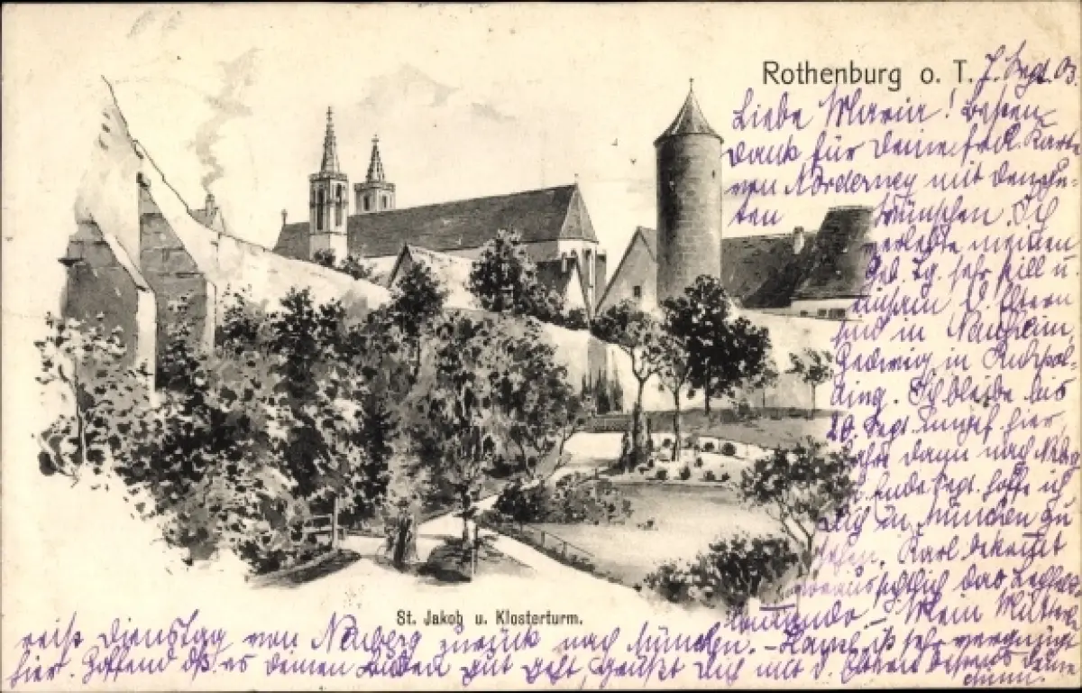 Künstler Ak Rothenburg ob der Tauber Mittelfranken, St. Jakob, Klosterturm