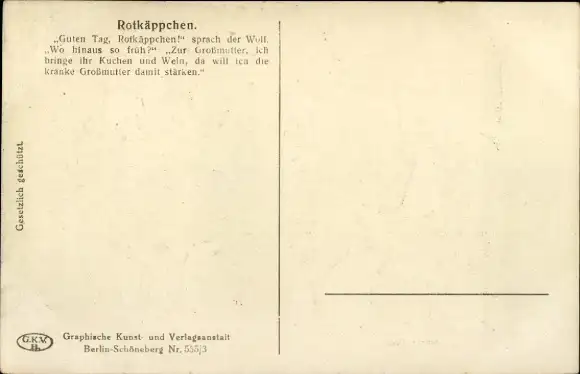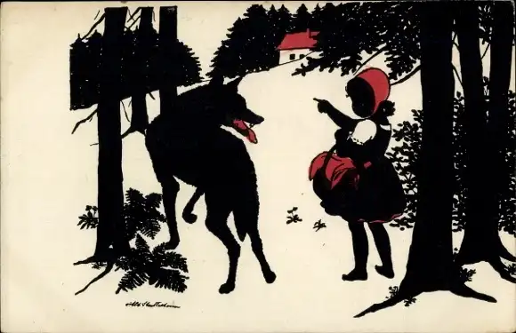 Künstler Ak Rotkäppchen, Wolf, Märchen