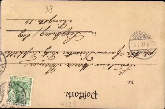 Zustand, siehe Scan, gelaufen, 1903 - ca 9 cm X 14 cm