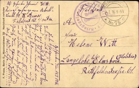 Zustand, siehe Scan, gelaufen, 1916 - ca 14 cm X 9 cm