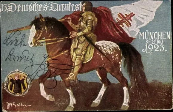 Künstler Ak Sailer, München Bayern, 13. Deutsches Turnfest 1923, Reiter, Kindl