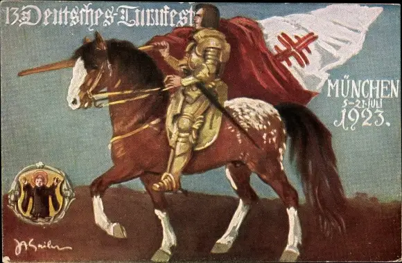 Künstler Ak Sailer, München Bayern, 13. Deutsches Turnfest 1923, Reiter, Kindl