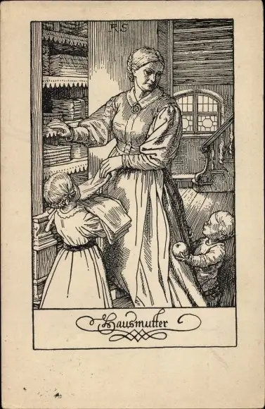 Künstler Ak Schaefer, Rud., Hausmutter, Mutter mit Kindern am Wäscheschrank