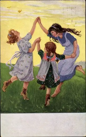Künstler Ak Schenkel, F., Spielende Kinder auf Blumenwiese