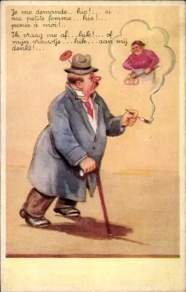 Künstler Ak Scheuermann ?, Betrunkener Mann, wütende Ehefrau im Zigarettenrauch