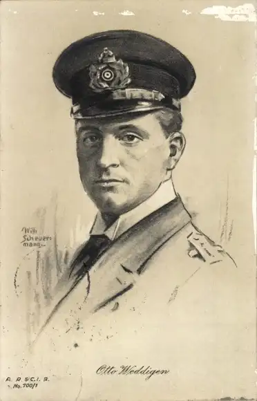 Künstler Ak Scheuermann,U Boot Kommandant Otto Weddigen