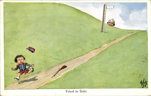 Künstler Ak Scheuermann, Willi, Feind in Sicht, Kinder als Soldaten