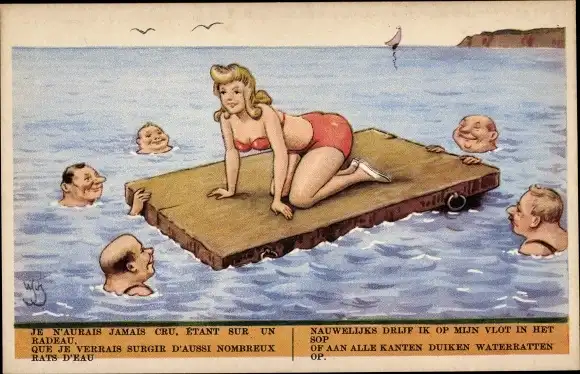 Künstler Ak Scheuermann, Willi, Frau im Bikini umringt von Verehrern