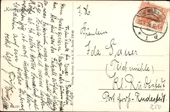 Zustand, siehe Scan, gelaufen, 1916 - ca 14 cm X 9 cm